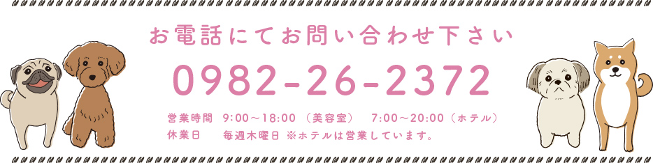 0982-26-2372| 営業時間 | 9:00~18:00 (美容室) 7:00~20:00(ホテル) |